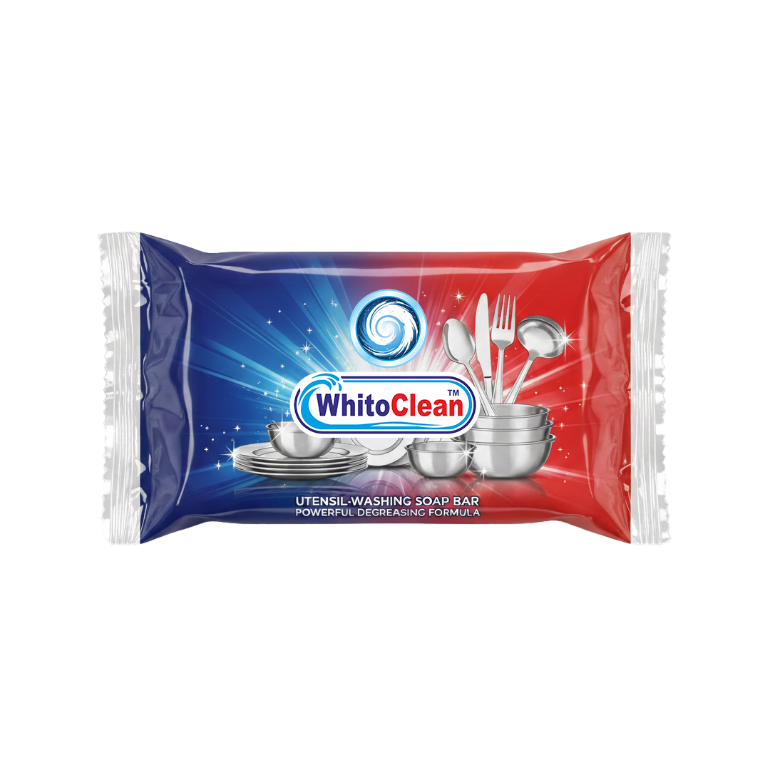Whito Clean Dishwash Bar is a powerful cleaning solution specially formulated to remove tough grease, oil, and food stains from utensils with ease. Its concentrated formula ensures effective cleaning while being gentle on hands, leaving dishes sparkling and hygienic. Easy to use and long-lasting, it produces rich foam for thorough scrubbing and eliminates residue completely. With Whito Clean Dishwash Bar, your kitchen stays clean, fresh, and shining after every wash — perfect for daily household use.